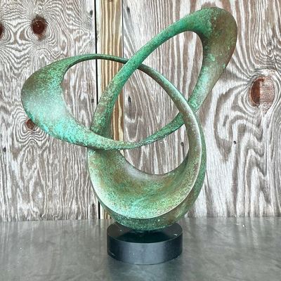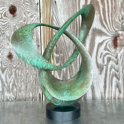 Abraza la belleza atemporal del arte envejecido. Esta exquisita escultura pequeña está hecha de cobre macizo y terminada con una impresionante pátina de aspecto natural. Este distintivo tono azul-verdoso, que recuerda a las estatuas antiguas y los detalles arquitectónicos desgastados, no es simplemente un revestimiento, sino una celebración del noble proceso de envejecimiento del metal.