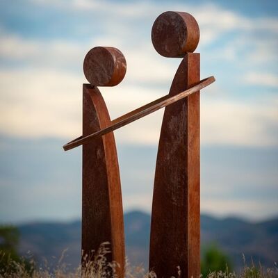 Este Abstractoescultura elaborada con acero resistente a la intemperie duradero.