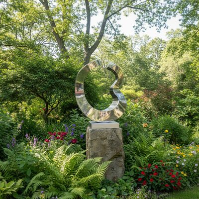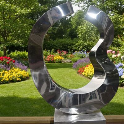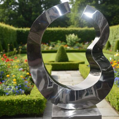 Esta escultura contemporánea presenta una forma fluida y abstracta hecha de acero inoxidable pulido de alta calidad. Su superficie reflectante crea una interacción dinámica con la luz y el entorno,lo que lo convierte en un punto focal llamativo para cualquier jardín, césped o paisaje.
