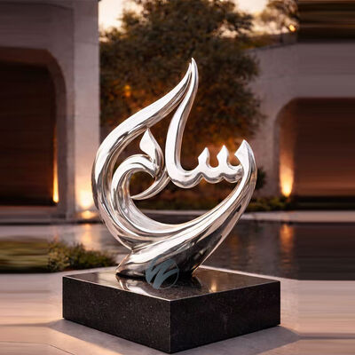 "AMOR" en plata ️ Escultura de espejo de acero inoxidable de inspiración árabe para espacios de lujo